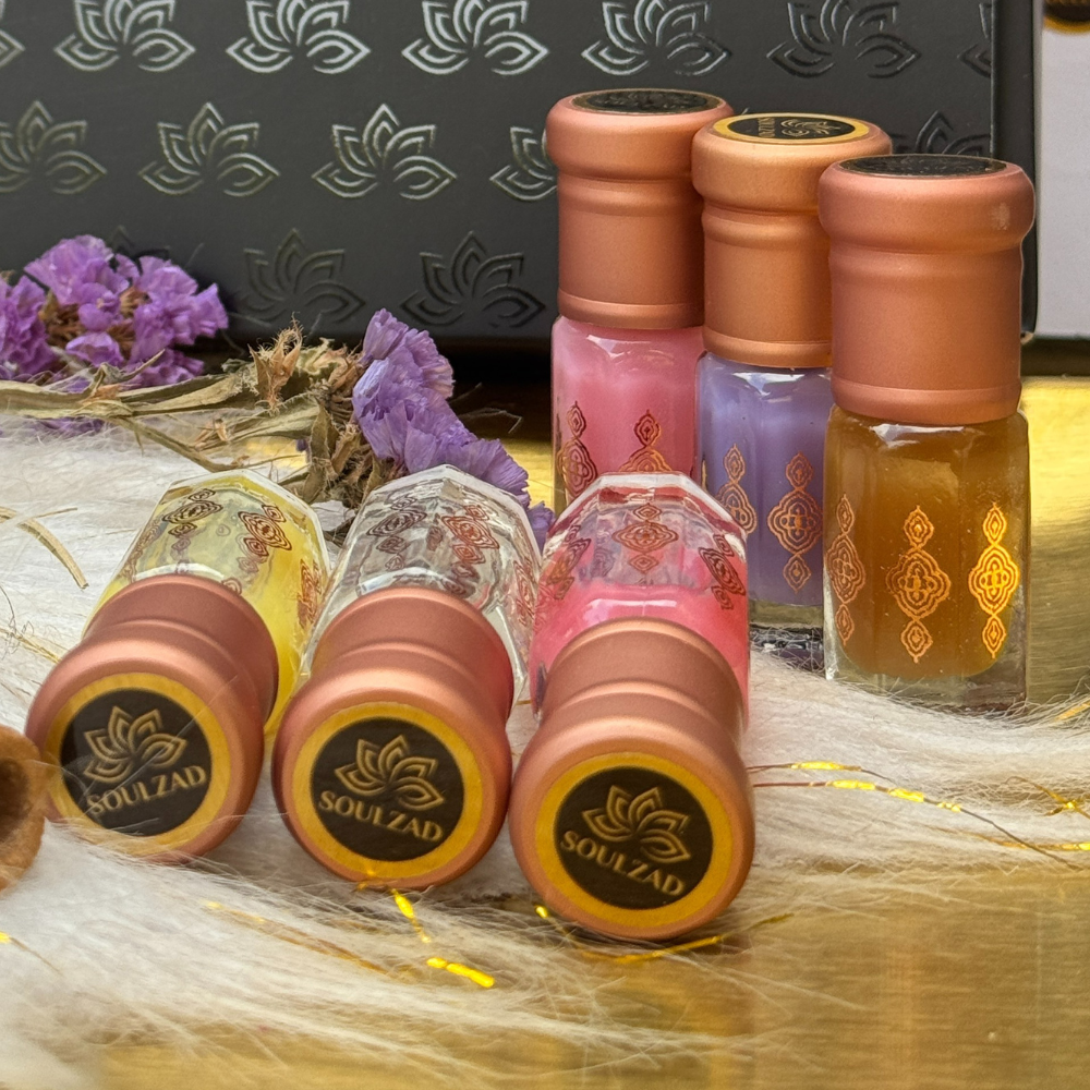 Indulge in a luxurious scent that blends softness and long-lasting freshness with the Soulzad Musk Collection Box. Carefully curated from the finest natural, alcohol-free musk, this collection enhances your mood and overall well-being. The set features a variety of 6 or 12 beautifully crafted musk scents, each in an elegant 3ml (¼ Tola) glass bottle, adding a touch of sophistication for an unforgettable gifting experience.